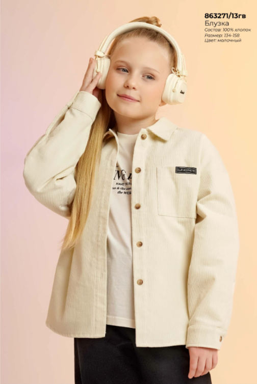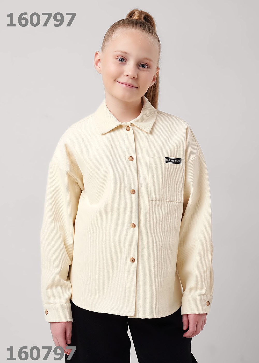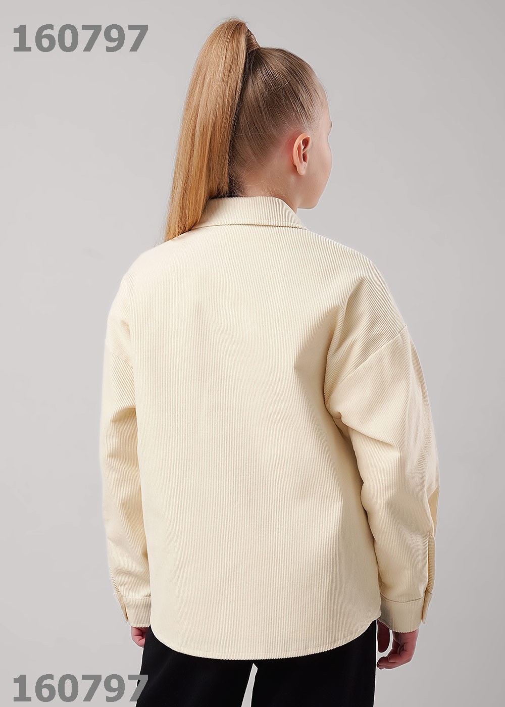 "Описание: Стильная рубашка из микровельвета станет отличным дополнением к твоему гардеробу. Лаконичная модель выполнена в молочном оттенке. Создавай уникальные образы с рубашкой из новой коллекции и получишь много новых классных образов на каждый день!