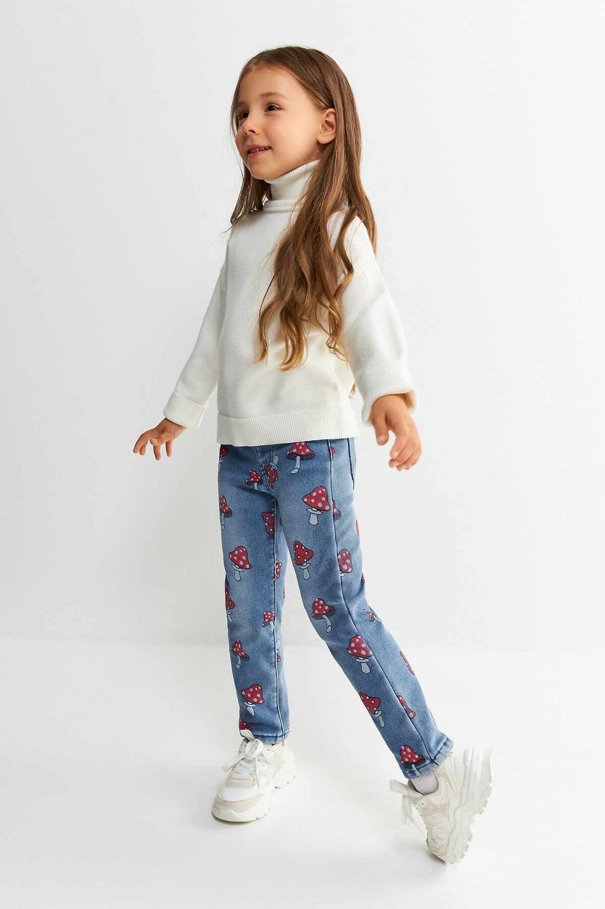 Брюки джинсовые (утепленные) детские для девочек Lama синий принт