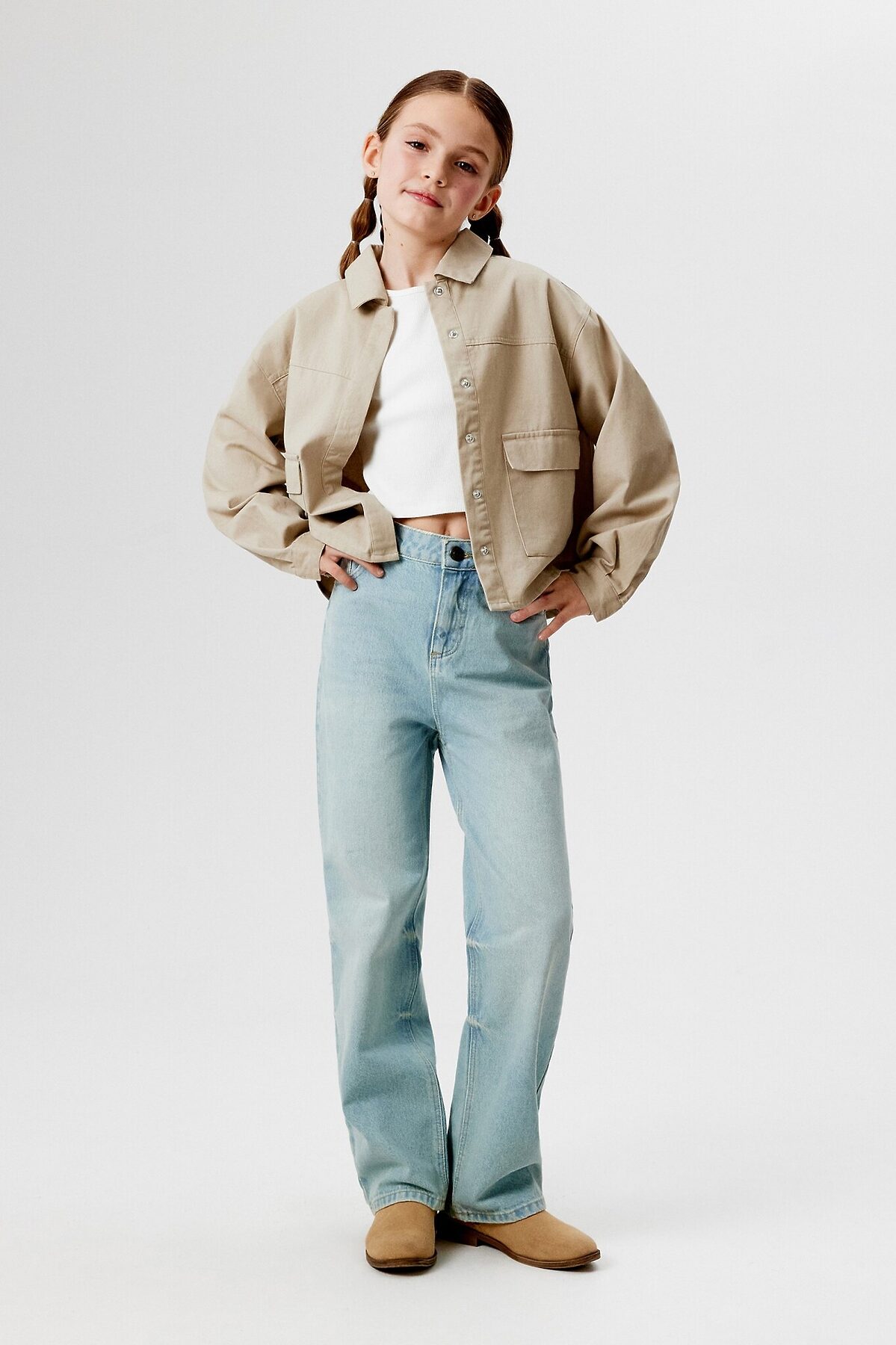 Детские джинсы straight fit для девочки выполнены из денима, который обеспечивает комфорт в ношении. Модель средней посадки с пятью карманами: двумя на спинке, двумя боковыми и одним небольшим внешним карманом, что добавляет изделию практичным и функциональным. Пояс регулируется на внутреннюю эластичную ленту. Джинсы с потертостями смотрятся стильно и модно. Застежка на пуговицу и молнию добавляет удобство в ношении. Модель представлена в двух цветах: синем с разрезами и голубом с потертостями. Стилизуйте эти джинсы с футболкой (20240510016) для создания модного повседневного образа.