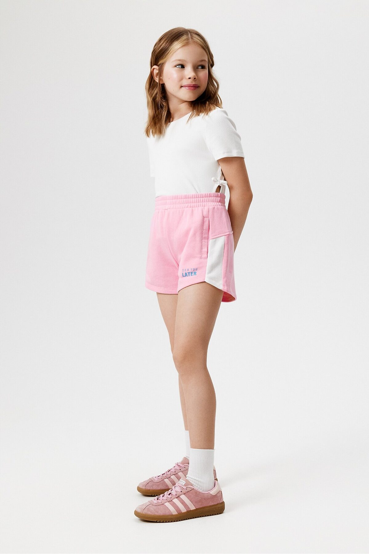 Детские шорты для девочки выполнены из футера с петлями на изнанке (без начёса), который обеспечивает комфорт в течение дня. Талия на резинке создаёт надёжную посадку, добавляя удобство в ношении. Контрастные вставки по бокам придают изделию интересный и оригинальный вид, что делает образ более запоминающимся. Боковые карманы позволяют хранить нужные мелочи. По низу изделия расположен текстовый принт "SEA SUN VIBE" англ. - "Солнечный морской вайб", что добавит ребенку позитивный настрой. Кокетка на спинке придаёт шортам завершенный вид. Модель представлена в двух цветах: голубом и розовом. Стилизуйте шорты с футболкой, чтобы создать повседневный образ для ношения в теплое время года. (20240420020)
