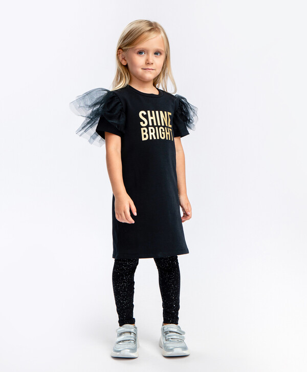 цветЧерныйосновная ткань:95% хлопок/5% эластан; отделочная ткань:100% полиэстер Хлопок Платье-футболка с коротким рукавом и принтом черное Button Blue