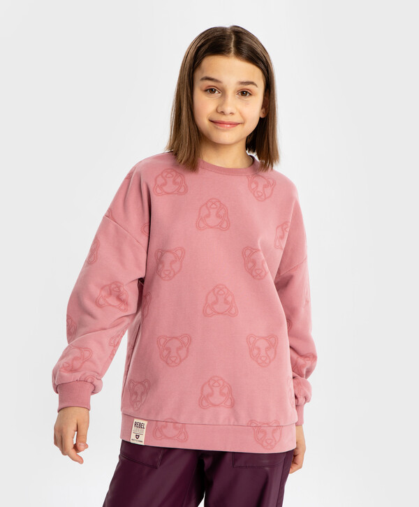цветРозовый80% хлопок/20% полиэстер Хлопок Толстовка с принтом хищные кошки розовая для девочки Button Blue