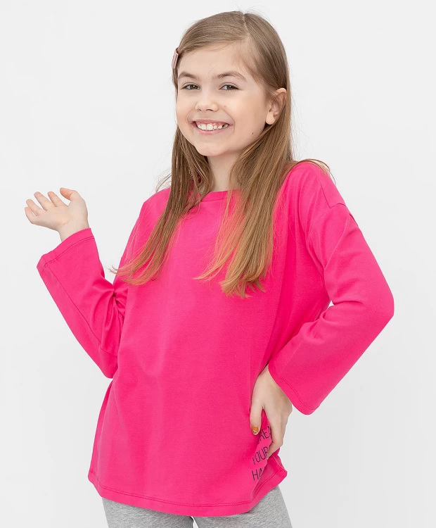 270 р. 539 р. Лонгслив однотонный из натуральной ткани с комфортной посадкой розовый Button Blue