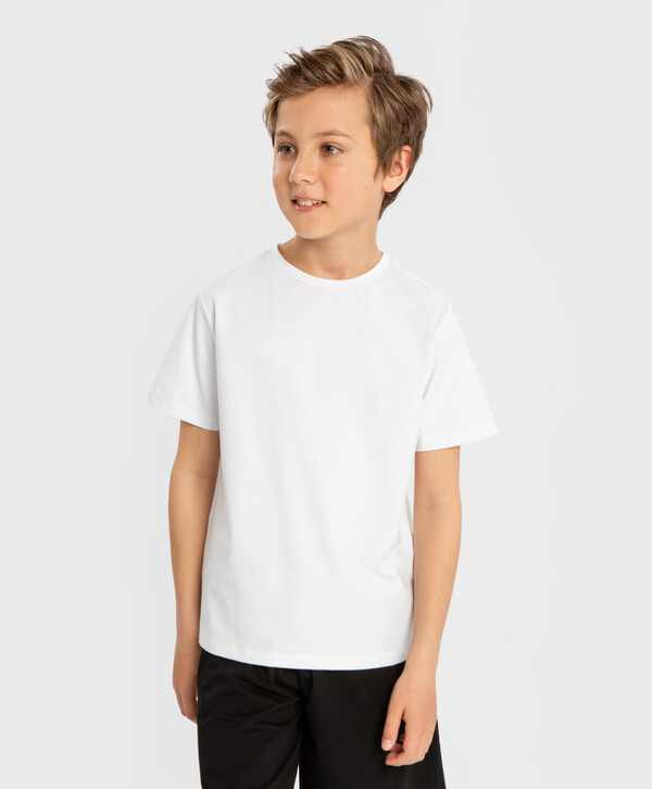 цветБелый95% хлопок/5% эластан Хлопок Футболка с круглым воротом белая детская Button Blue