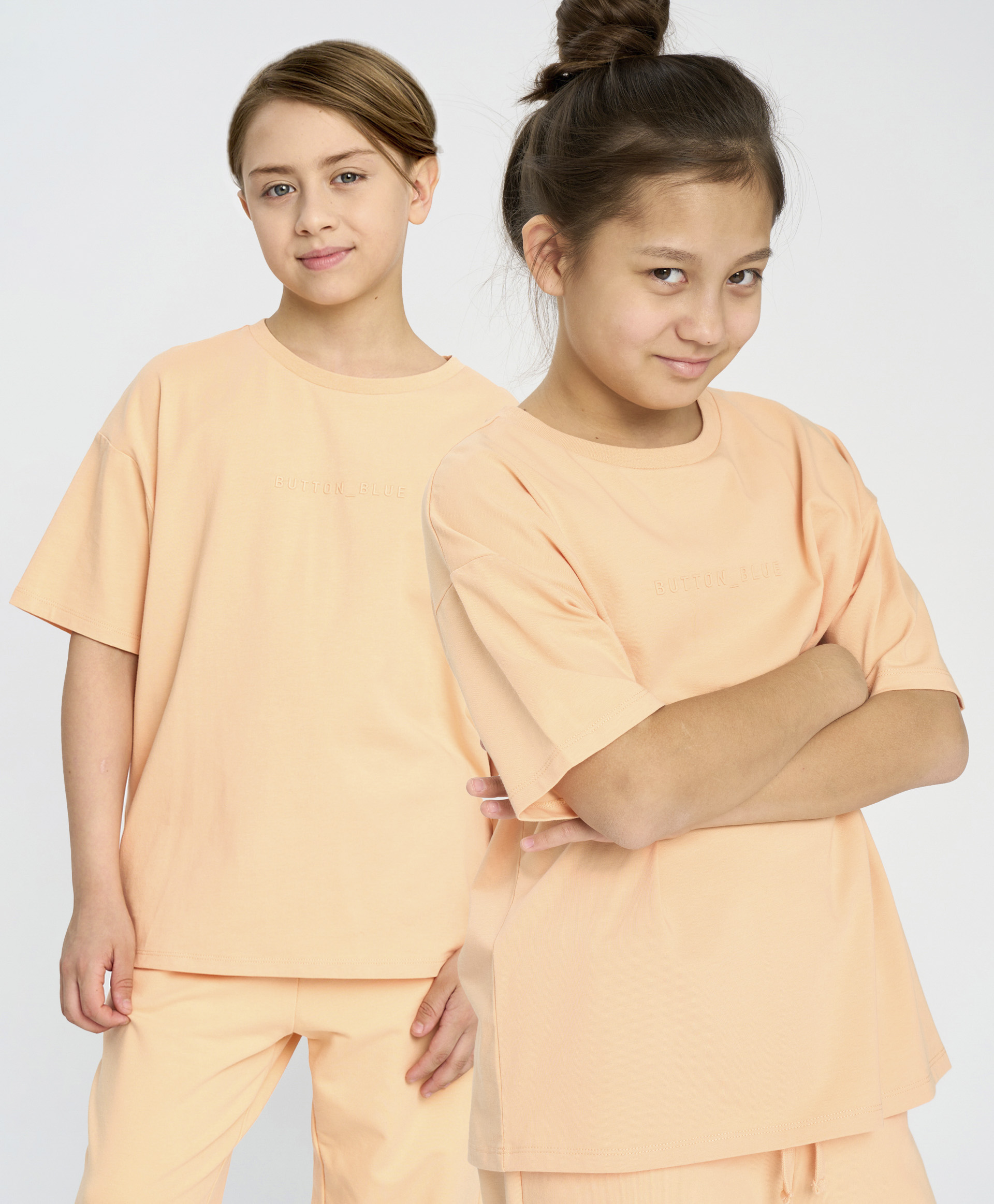цветОранжевый95% хлопок/5% эластан Хлопок Футболка с коротким рукавом детская базовая оранжевая Button Blue