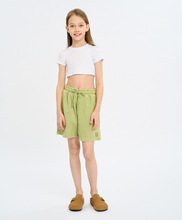 цветБелый95% хлопок/5% эластан Хлопок Футболка облегающая укороченная в рубчик белая Button Blue