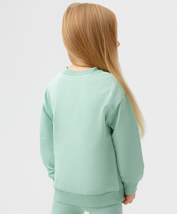 Светло-зеленый базовый свитшот для девочки с округлой горловиной и оригинальным текстовым принтом подарит заряд хорошего настроения и максимальный комфорт в носке. Уютная модель из футера имеет гладкую лицевую сторону и петельчатую изнанку без начеса. Мягкая хлопковая ткань приятна на ощупь, проста в уходе и обеспечивает оптимальную терморегуляцию. Прямой крой изделия способствует свободной и модной посадке oversize. Низ изделия, горловина и манжеты выполнены из эластичной рибовой ткани. Лаконичный текстовый принт на полочке однозначно поднимет юной моднице настроение и позволит ей быть в центре внимания. Детский свитшот мятного оттенка оптимально сочетается с джоггерами, джинсами, лосинами и шортами из коллекций Button Blue. Модель длиной до бедра представлена в широком размерном диапазоне от 98 до 158.