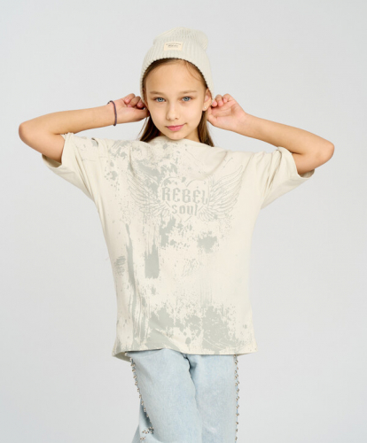 715 р. 1100 р. Футболка с коротким рукавом для девочки коралловая с принтом Button Blue