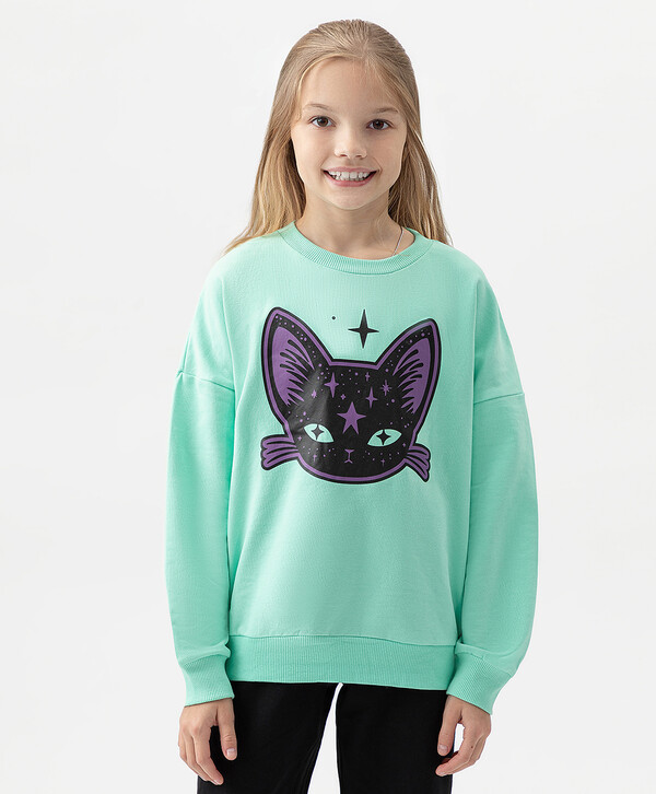 цветСалатовый95% хлопок/5% эластан Хлопок Свитшот со спущенным рукавом и манжетами салатовый Button Blue