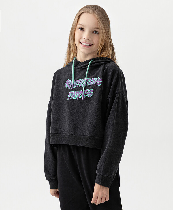 цветСерый95% хлопок/5% эластан Хлопок Худи укороченное со спущенным рукавом серое Button Blue