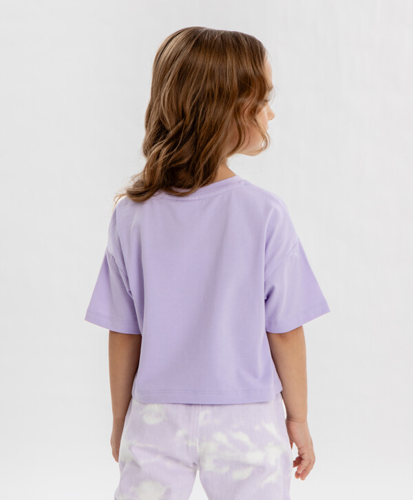 715 р. 1100 р. Футболка укороченная с принтом сиреневая для девочки Button Blue