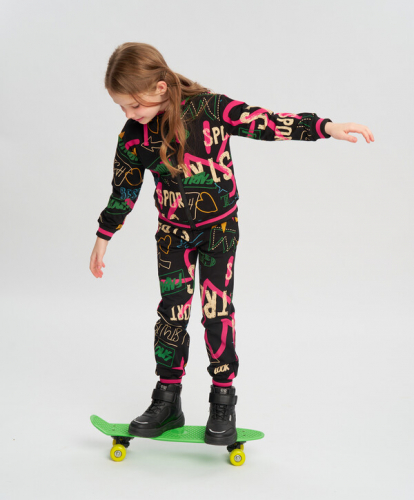 Белый свитшот для девочки с ярким принтом на полочке. Толстовка из футера имеет гладкую лицевую сторону и приятную на ощупь петельчатую изнанку без начеса. Хлопковая ткань с небольшим добавлением эластана обеспечивает качественный воздухообмен и оптимальную растяжимость с сохранением первоначальной формы. Округлая горловина, низ кофты и рукава оснащены эластичными фактурными манжетами, которые будут мягко прилегать к телу. Прямой крой изделия со спущенной линией плеча обеспечивает свободную посадку oversize без облегания. Крупный принт с мишкой и надписью на полочке добавит в образы очарования и определенно будет поднимать настроение юной моднице. Свитшот в стиле casual длиной до бедра отлично комбинируется с разнообразием одежды из капсульной коллекции Button Blue.