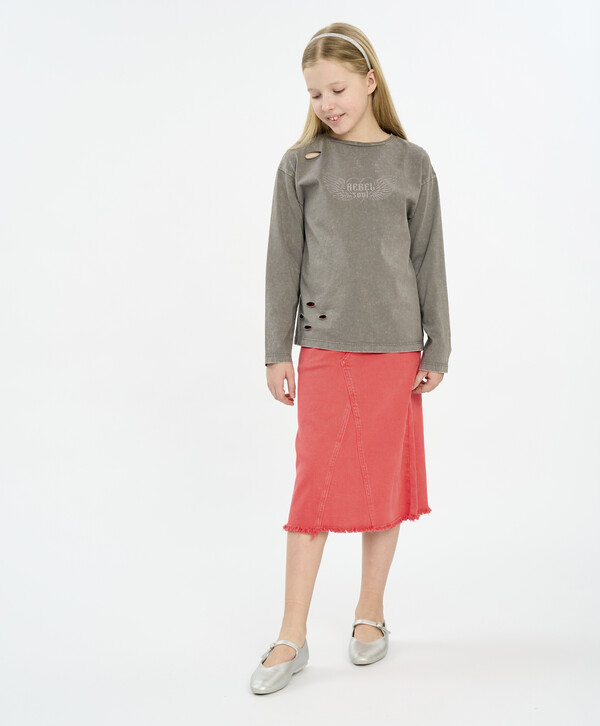 Стильный лонгслив для девочки из тонкого трикотажа single jersey станет отличным дополнением гардероба каждой юной модницы. Лонгслив для подростка создан с учетом всех современных тенденций: он сочетает в себе удобство и оригинальный дизайн. На полочке акцентное изображение с металлическими блочками и прорезями, что делает этот детский лонгслив особенно привлекательным для девочек, стремящихся выделяться. Благодаря своему креативному дизайну, этот лонгслив с принтом отлично подходит как для повседневной носки, так и для особых случаев. Изготовленный из мягкого и дышащего трикотажа, лонг обеспечивает комфорт в течение всего дня. Этот трикотажный лонгслив легко комбинируется с различными элементами одежды, такими как юбки, брюки или шорты, делая его универсальным вариантом для создания стильного образа. Модная футболка оверсайз подходит как для школы, так и для прогулок или встреч с друзьями. Она станет отличным выбором для активного образа жизни подростков. Лонг идеально подходит для летнего сезона благодаря своей легкости и нежности материала. Футболка хлопок для девочки с длинным рукавом хорошо защищает от прохладного ветерка, а ее прямой и свободный крой гарантирует свободу движений. Не упустите возможность обновить гардероб вашего ребенка с этим замечательным лонгсливом. Он не только сделает повседневный стиль более интересным, но и подарит ощущение уверенности. Правильный уход за одеждой поможет продлить срок службы любимых вещей.