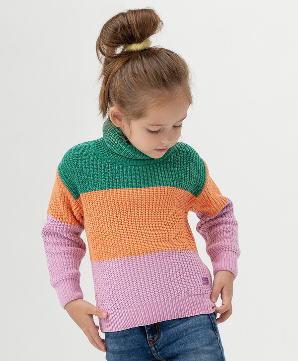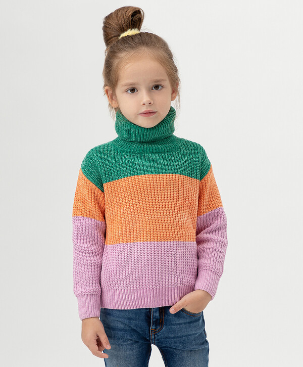 700 р. 1400 р. Свитер со спущенным рукавом и большим воротником-стойкой разноцветный Button Blue