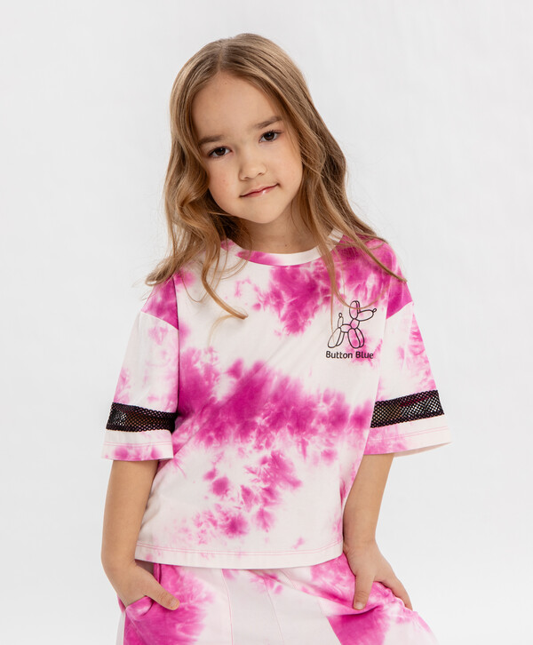 748 р. 1150 р. Футболка оверсайз с принтом тай дай розовая для девочки Button Blue
