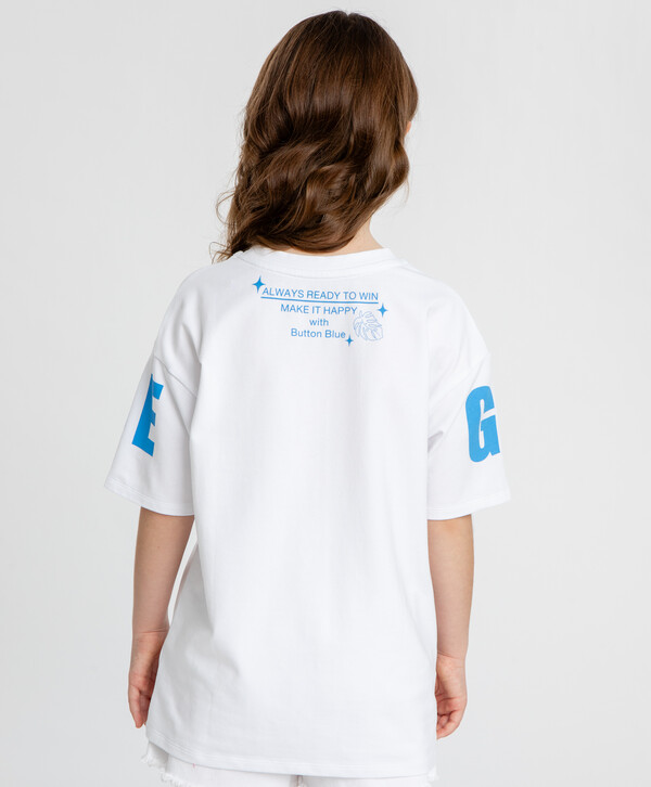 748 р. 1150 р. Футболка с принтом белая для девочки Button Blue