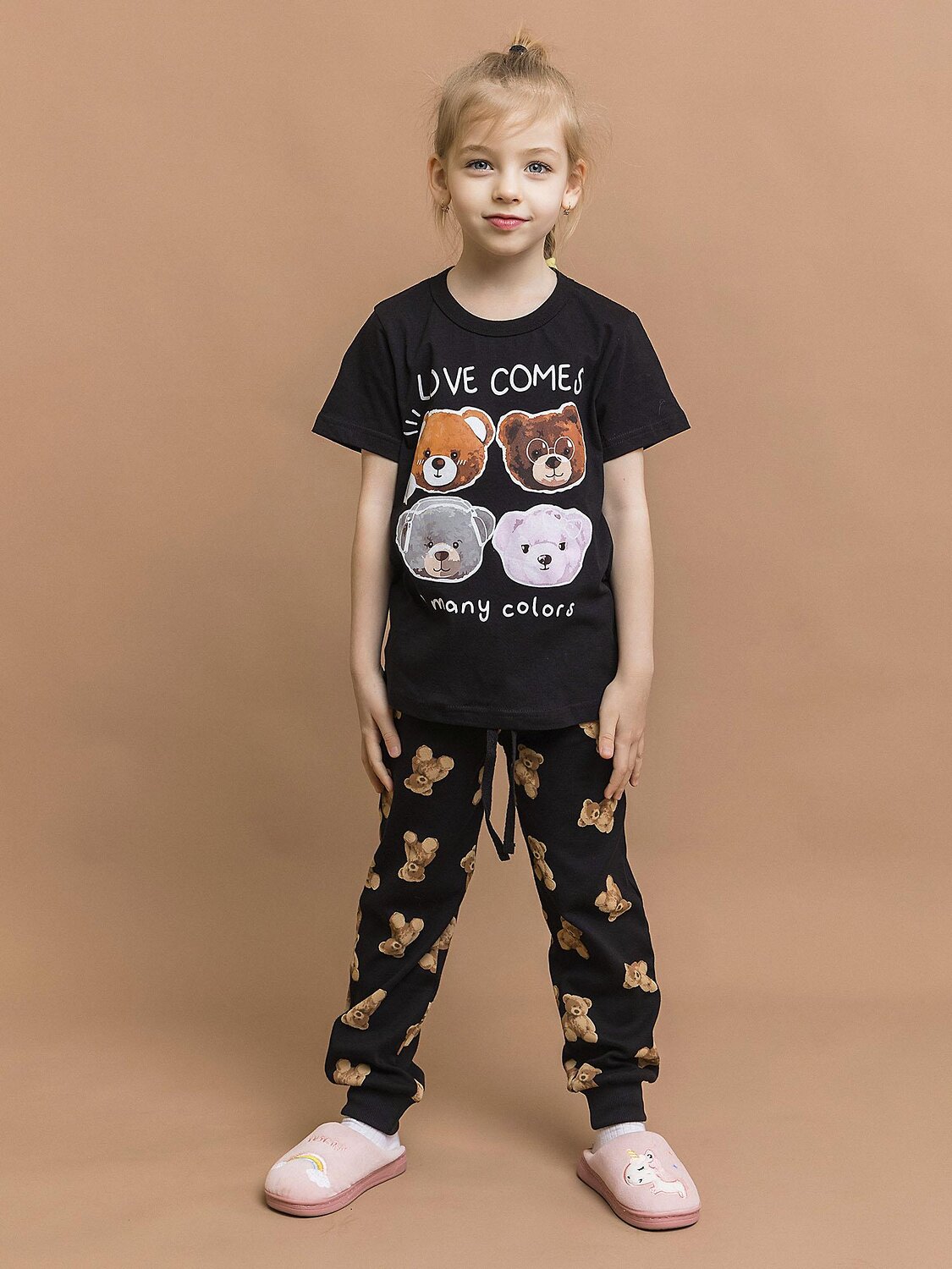 Футболка с коротким рукавом черная для девочки трикотажная из натурального хлопка. Удобная футболка – неотъемлемая часть детского гардероба, а данная модель подойдет не только для повседневной носки, но и активного отдыха и занятий спортом. Круглая горловина, оригинальный принт на груди.