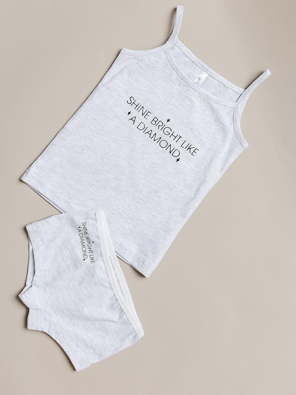 Комплект нижнего белья для девочки серый: майка и трусы. Удобная посадка, мягкая дышащая ткань. Майка на тонких бретелях. Трусики шорты на мягкой резинке. Отличный комплект на каждый день.