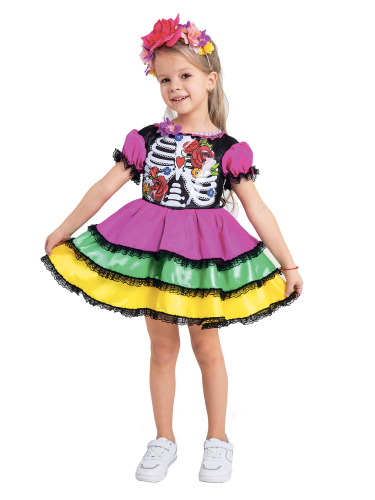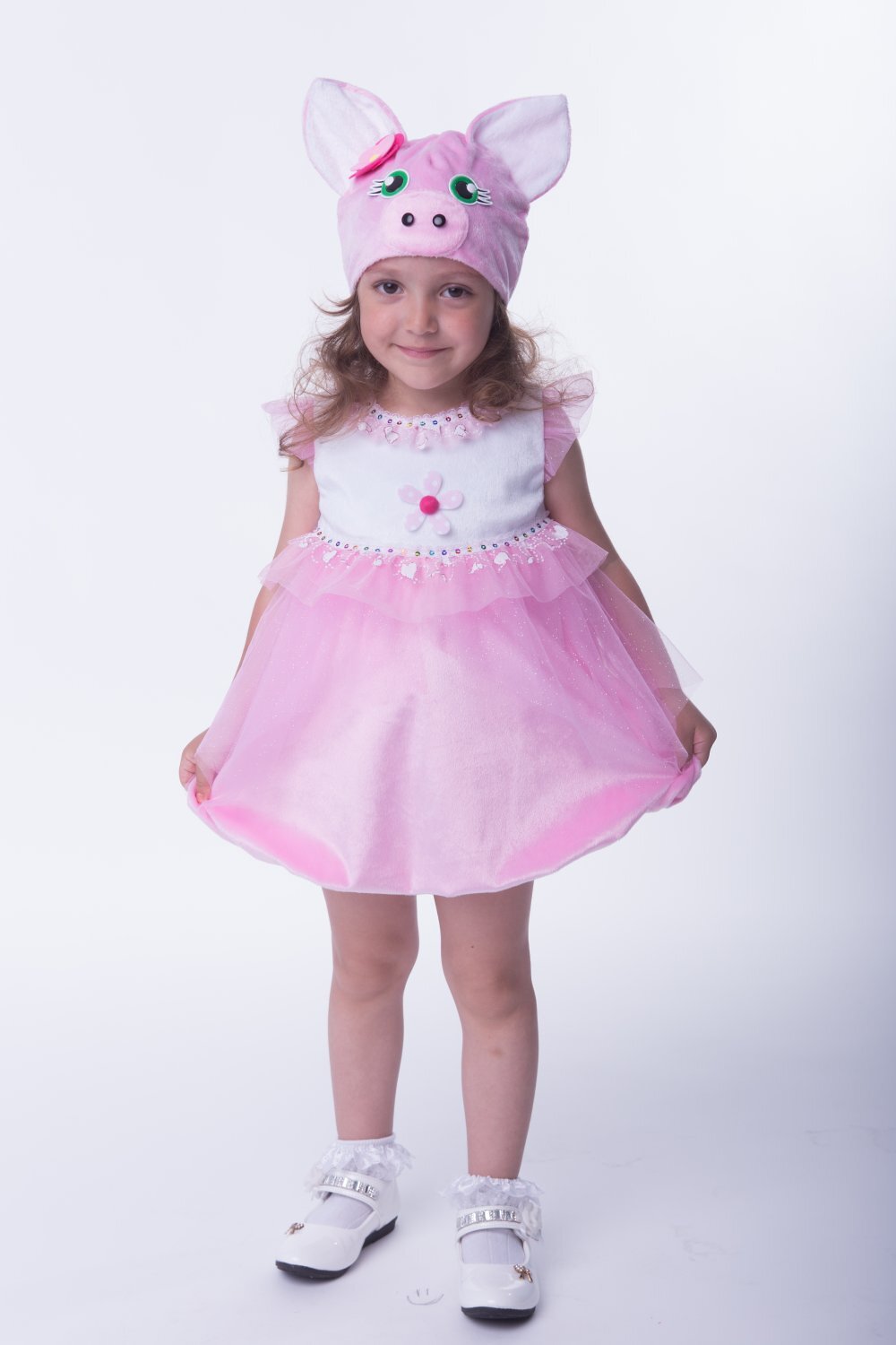 Легкий наряд, в котором девочка не будет чувствовать никакого дискомфорта, и сможет провести праздник отлично и весело. Комплект костюма состоит из платья и шапочки-маски.