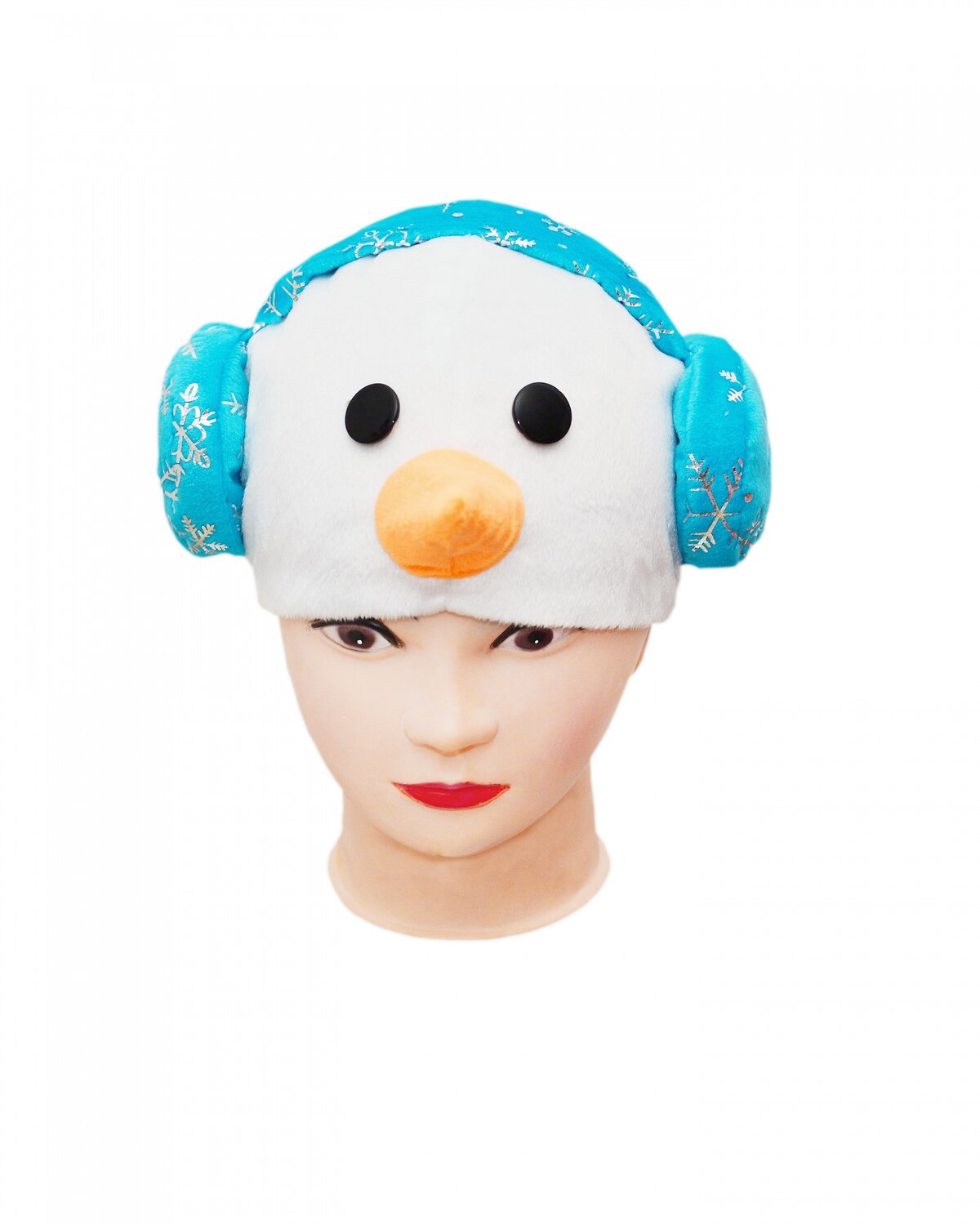 Плюшевая карнавальная маска, изображающая необычного Снеговика в наушниках. Маска-шапка - удобный и качественный аксессуар для карнавальных торжеств. Удобно носится и не создает дискомфорта. Отличное дополнение к детскому новогоднему образу. На маске пришиты черные глазки, нос-морковка и голубые наушники с принтом.