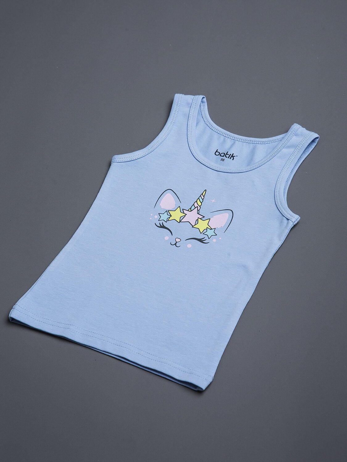 Детская майка для девочки в нежном голубом цвете. Воздушная и комфортная майка на широких бретелях, созданная из премиального супрема пенье. Невесомая хлопковая ткань с эластаном обеспечивает идеальную воздухопроницаемость. Эластичный материал мягко облегает фигуру, не стесняя движений. Аккуратная строчка и отсутствие грубых швов гарантируют комфорт при носке.