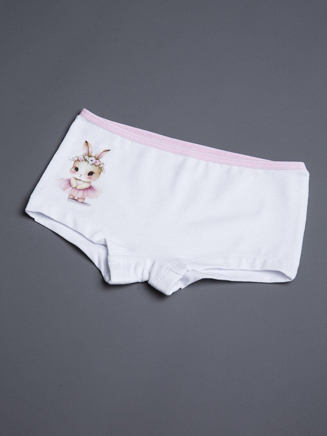 Детские трусы-шортики для девочки белого цвета. Мягкие и комфортные трусики из нежного супрема пенье, которые обеспечивают идеальную посадку и не раздражают кожу. Эластичная ткань с добавлением лайкры мягко облегает, не сдавливая, а натуральный хлопок позволяет коже дышать. Приятный белый цвет и милый рисунок. Удобная резинка не перетягивает и не оставляет следов на теле.