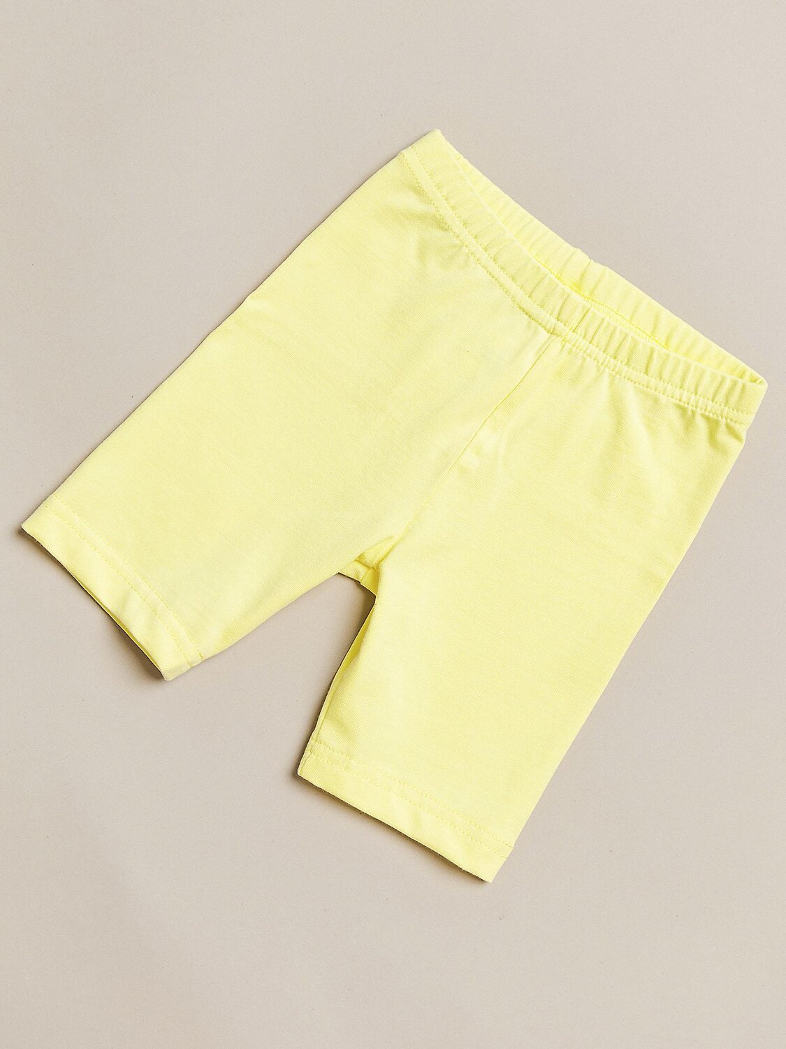 Велосипедки для девочки желтые на резинке из эластичного трикотажа. Детские велосипедки спортивные подойдут для гимнастики и летних прогулок. Это удобная и стильная одежда для маленьких модниц. Шорты-велосипедки выполнены из высококачественных материалов, которые не только выдерживают интенсивное использование, но и дарят чувство комфорта в жаркие летние дни.