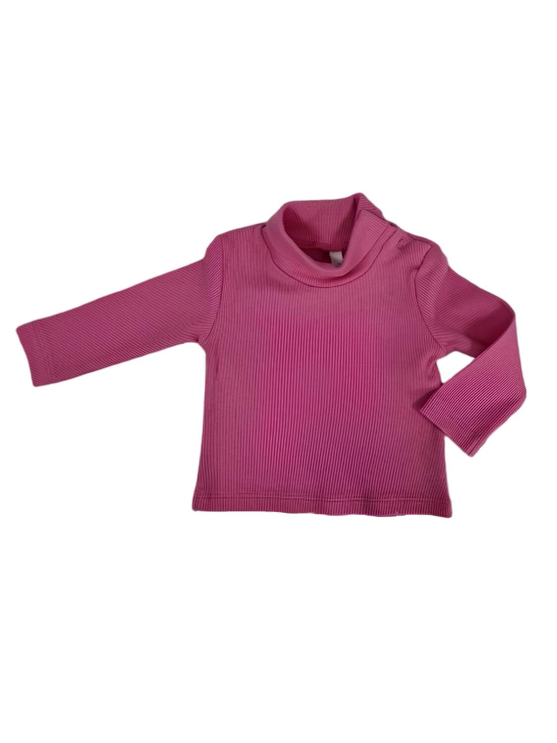 Водолазка для девочки из кашкорсе в расцветке фуксия. Универсальная базовая водолазка для новорожденных с длинным рукавом. Детская трикотажная водолазка с высоким горлом выполнена из однотонного трикотажа кашкорсе в рубчик. На воротнике есть застежки-кнопки.