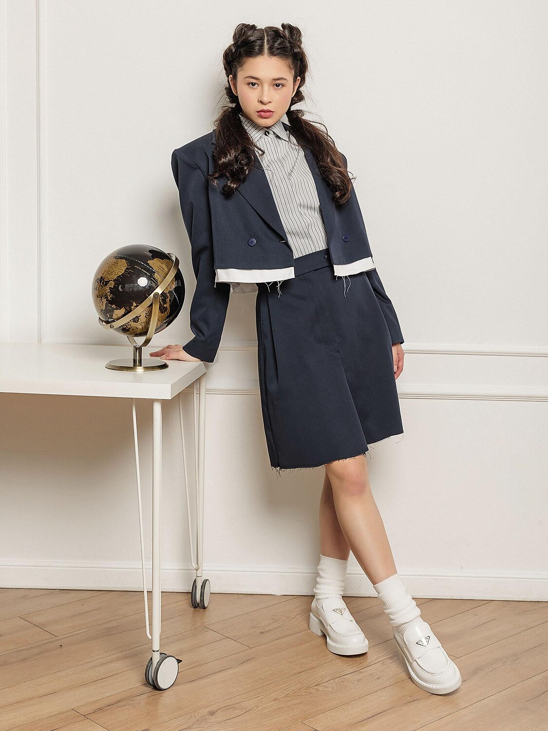 Школьная юбка-шорты темно-синего цвета. Умная конструкция с регулируемыми хлястиками по бокам – можно точно подогнать по фигуре. Аккуратные складки спереди создают элегантный объем и свободу движений. Практичные боковые карманы – удобно хранить необходимые мелочи. Скрытая застежка-гульфик обеспечивает аккуратный внешний вид. Необработанный нижний срез придает изделию стиля и оригинальности. Качественная костюмная ткань – держит форму, не мнется, выглядит опрятно. Универсальный темно-синий цвет – сочетается с любыми блузами и водолазками.