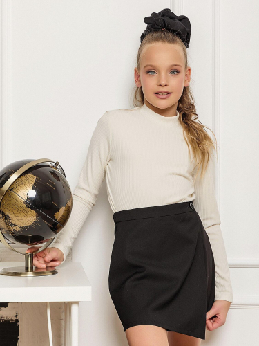 Жакет укороченный темно-синий на подкладке для девочки. Застежка двубортная, рукав двушовный эргономичный. Костюмный воротник, по низу декоративный элемент из сорочечной ткани с необработанным краем.