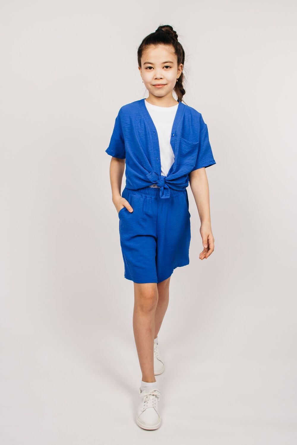 Нарядный костюм для девочек на лето выполнен из ткани сингапур. Комплект одежды состоит из рубашки прямого силуэта, плечо удлинено, с короткими рукавами и удлинёнными шортами на резинке. Блузка застегивается на пуговицы, имеет накладной карман. Свободные шорты оснащены двумя боковыми карманами. Крутой трикотажный костюм уместен летом, на день рождения, вечерние прогулки и фотосессию. Отлично подойдет на девочку подростка, как трендовый подростковый костюмчик. После стирки возможна усадка изделия. Состав: 92% полиэстер, 8% эластан. Плотность 170 гр.