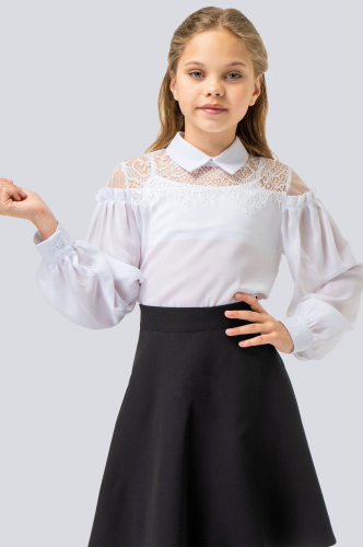 Нарядная однотонная блузка с длинным рукавом идеальна для школы.