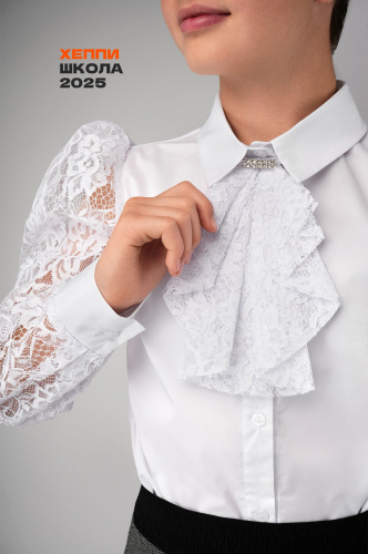 Белая блузка прямого кроя станет изящным акцентом в школьном образе девочки подростка. Блузку можно носить навыпуск и в заправленном виде. Детская блузка с воротником с кружевной отделкой пригодится на торжественное мероприятие.