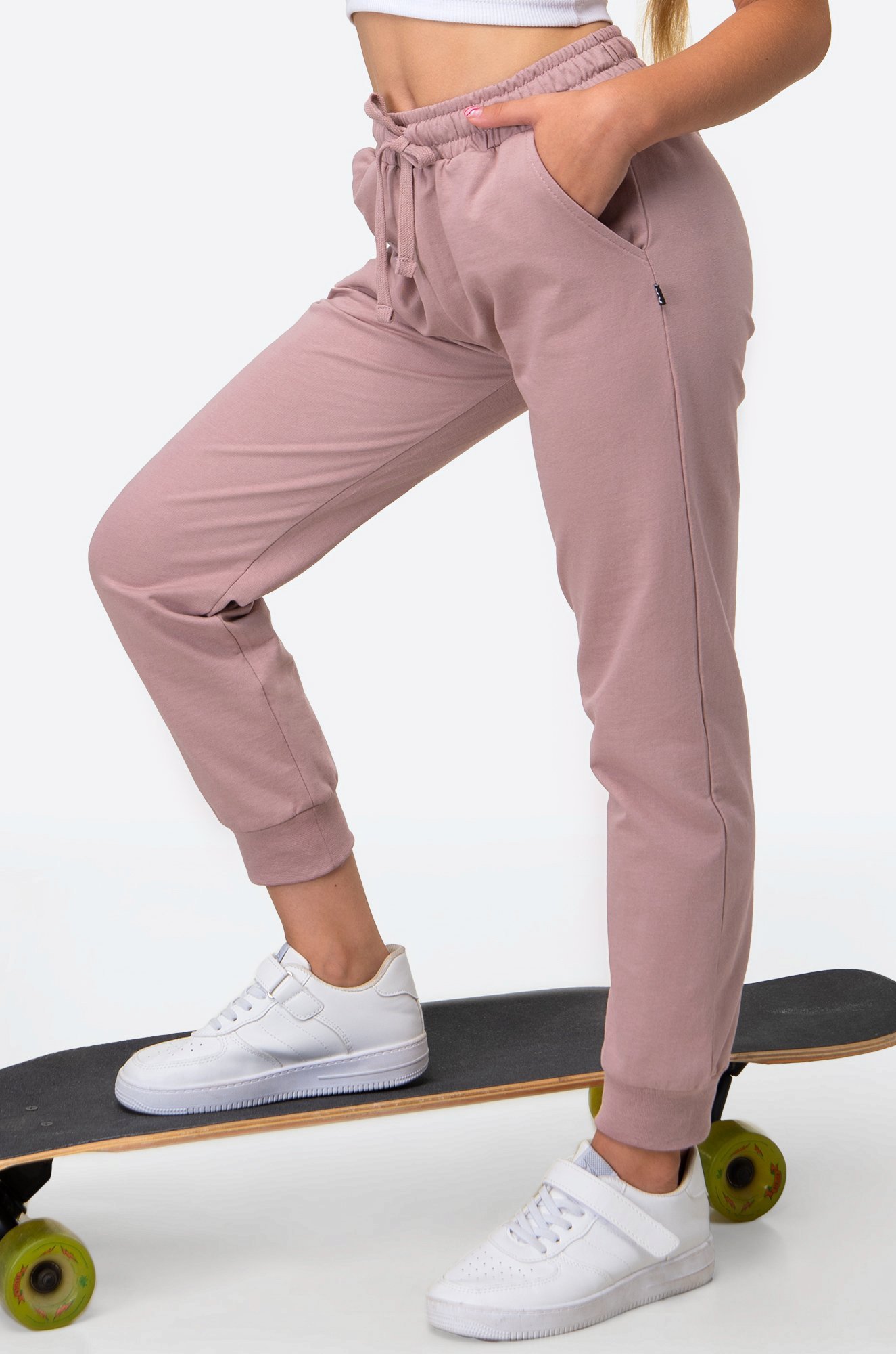Широкая мягкая резинка нежно прилегает к телу, а удобный шнурок помогает отрегулировать посадку штанов. Мягкие манжеты не сдавливают кожу и не позволяют штанинам задираться во время активных движений. Высокая посадка делает брюки комфортными для активного образа жизни!