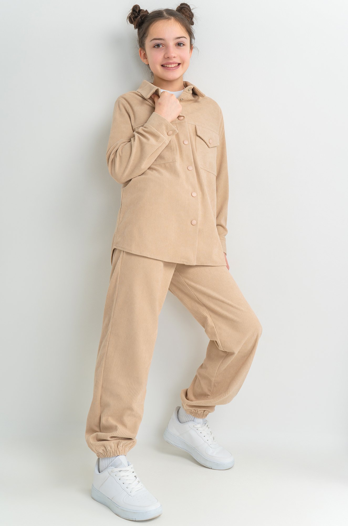 Вельветовый костюм с брюками для девочки — прекрасное решение на осень и весну. Мягкая бархатная фактура и свободный крой делают подростковый костюм любимым вариантом на каждый день.