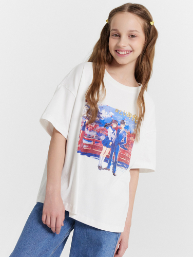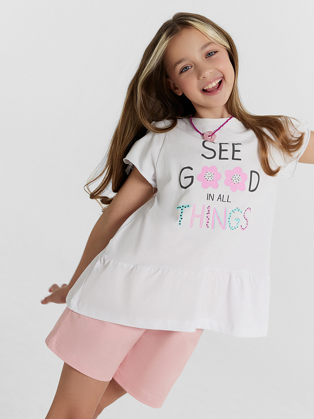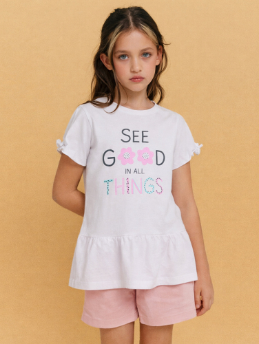 Блузка для девочек белая с принтом и надписью "see good in all things"