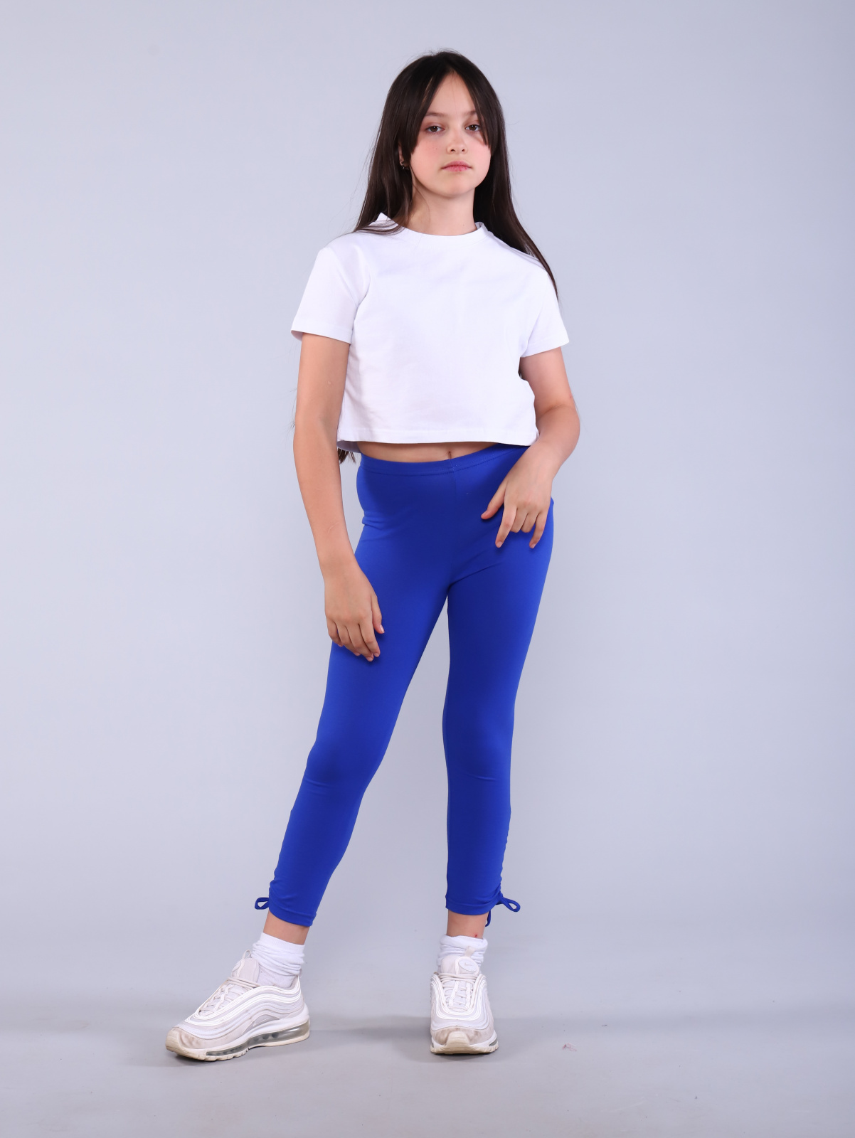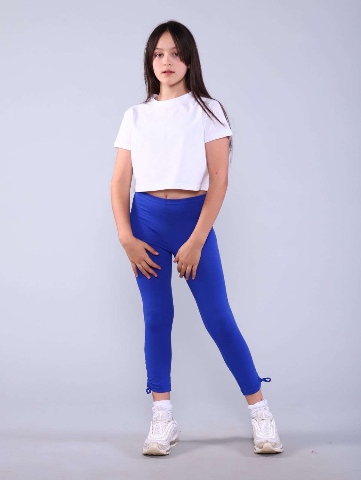 Детские укороченные лосины сшиты из хлопковой ткани с лайкрой с резинкой на поясе удобны при носке.