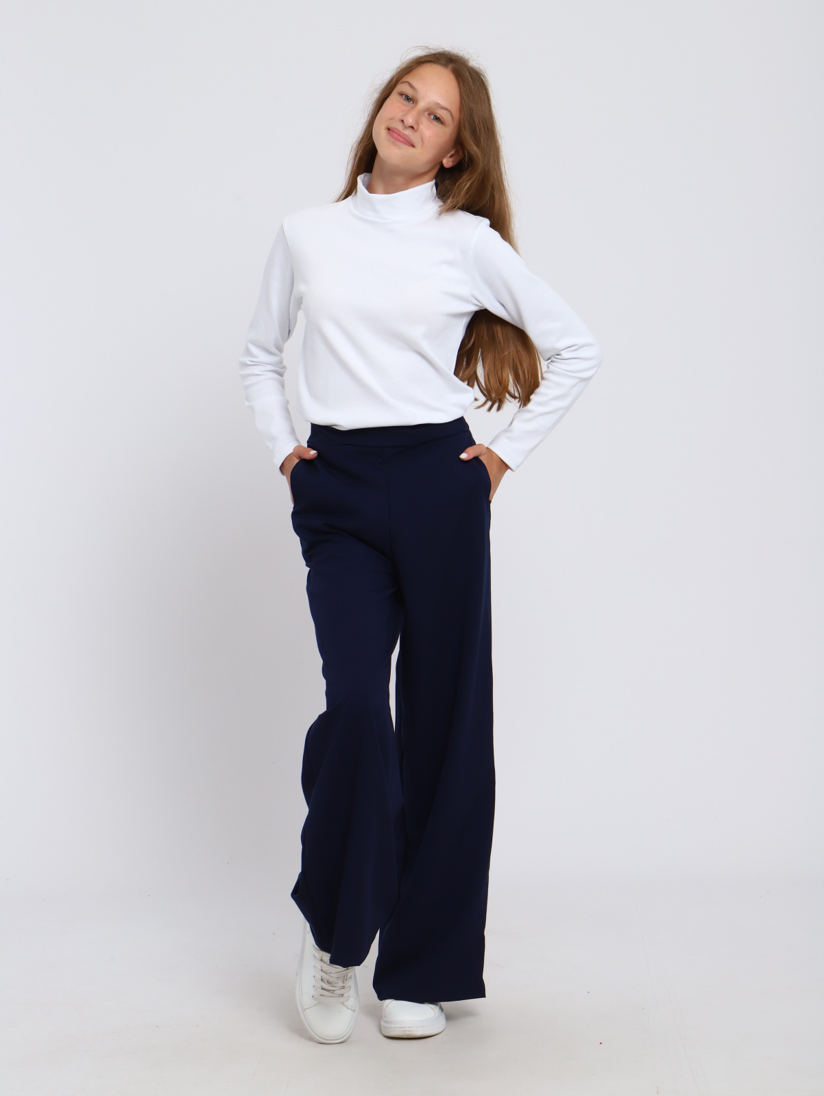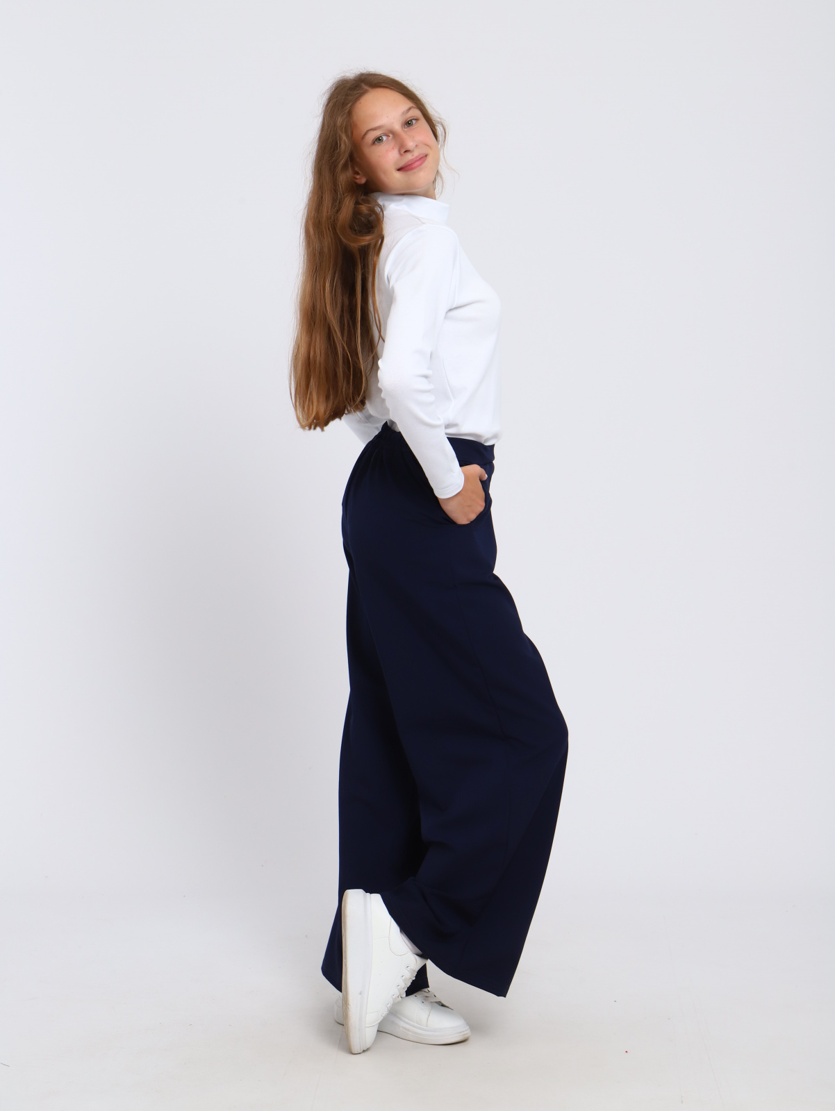 Классические брюки палаццо свободного кроя для девочек - это практичный вариант, который идеально подойдет для школьной формы. При этом, благодаря своему современному и актуальному дизайну, они станут отличным выбором не только для школы, но и для прогулок с подругами.