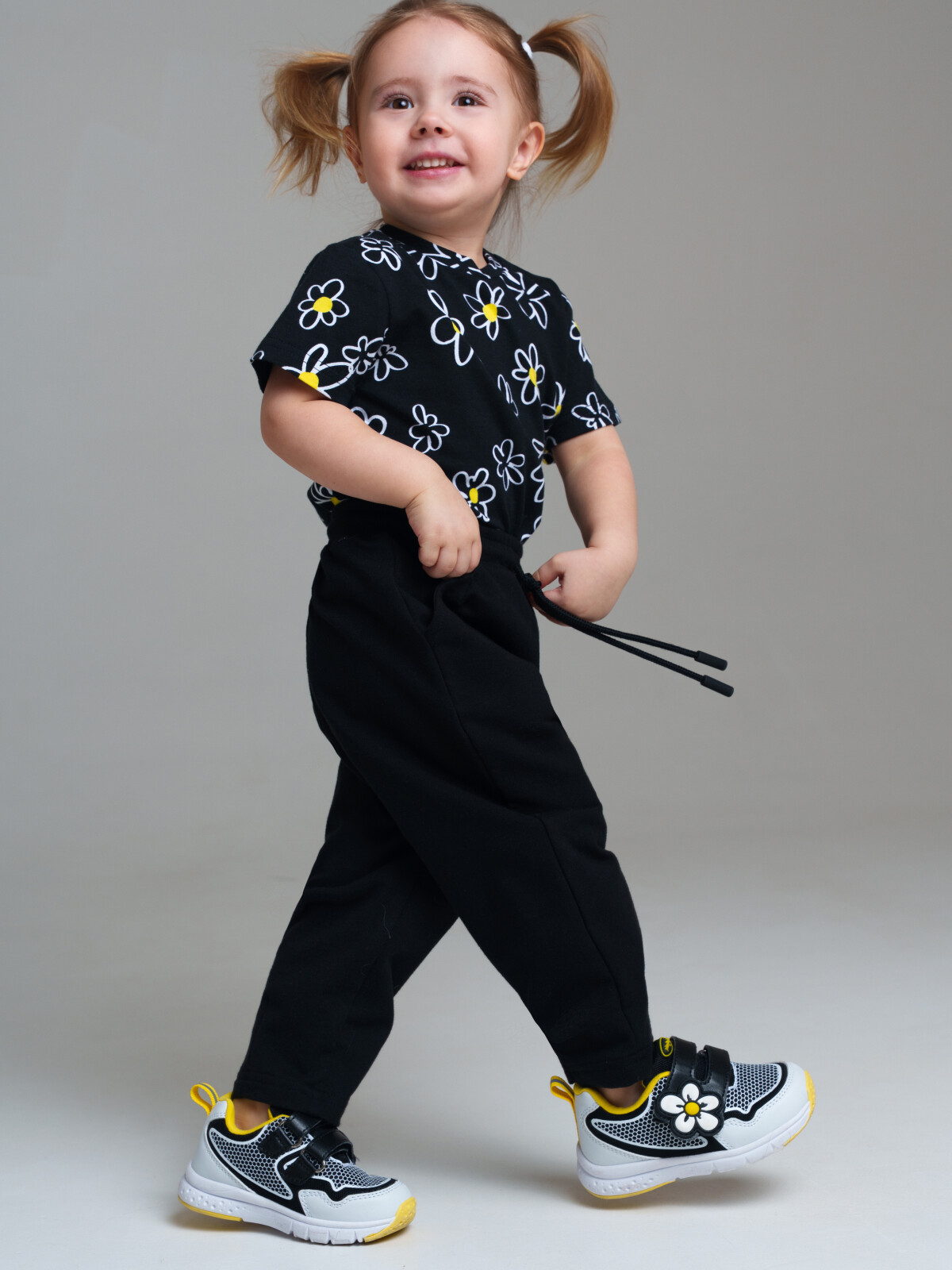 Брюки детские для девочки. Штаны на резинке со шнурком. Высокое содержание хлопка. Удобные боковые карманы. Модель выполнена из качественного и приятного на ощупь трикотажа.