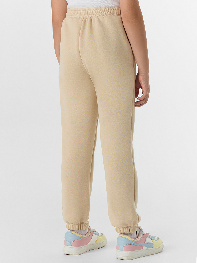 Брюки из трикотажного футера с подчесом. Силуэт свободный, на передних половинках обработаны карманы с наклонным входом. Пояс с эластичной тесьмой внутри. Низ штанин – с эластичной тесьмой, отвернут. Отличная модель для девочки!