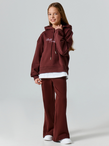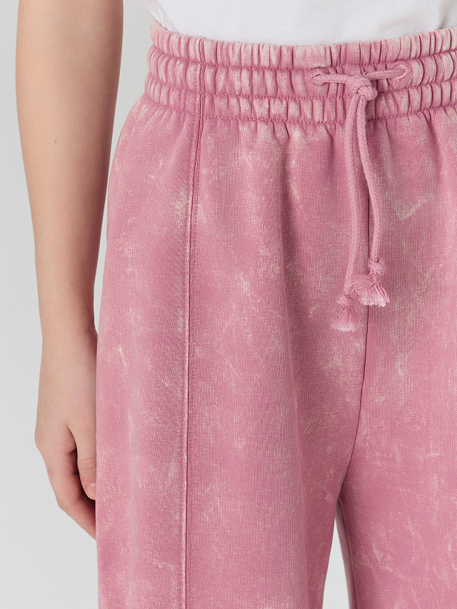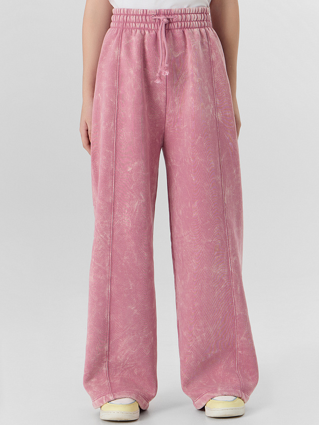 Брюки изготовлены из трикотажного полотна футер 3х нитка с подчесом. Брюки прямые, свободные со средней посадкой. Пояс цельнокроеный с эластичной тесьмой внутри (50RV). С внешней стороны пояса пробиты петли и втянут шнур с завязанными концами (5КXWС-1, 5мм).