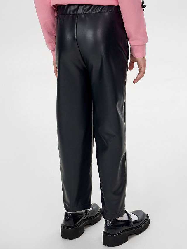 Брюки свободного силуэта. Посадка средняя. Пояс отрезной с эластичной тесьмой внутри. В боковых швах обработаны карманы. По низу брюк вытачки.