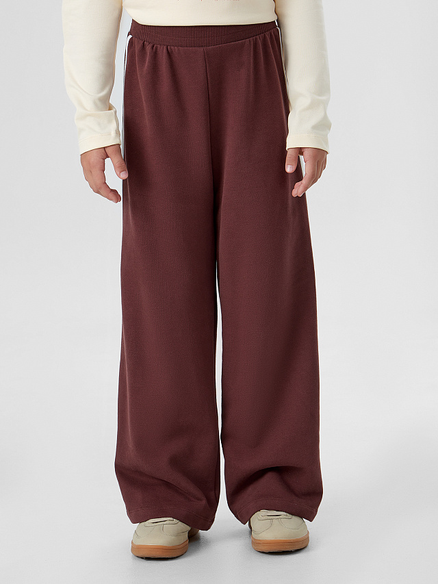 Брюки для девочки прямого кроя с высокой посадкой созданы для повседневного комфорта. Удобный эластичный пояс из рибаны обеспечивает идеальную посадку по фигуре. По бокам - лампасы из кулирки, которые добавляют модели стильный акцент. Модель выполнена из футера без подчеса, отличающегося мягкостью и отличной воздухопроницаемостью. Качественная обработка нижних срезов швом вподгибку гарантирует аккуратный внешний вид после множества стирок. Брюки для девочек Mark Formelle - практичное решение для школы, прогулок и активного отдыха. Благодаря продуманному крою и натуральному составу, они обеспечивают максимальный комфорт в течение всего дня. Классический дизайн позволяет создавать разнообразные образы для любого сезона.