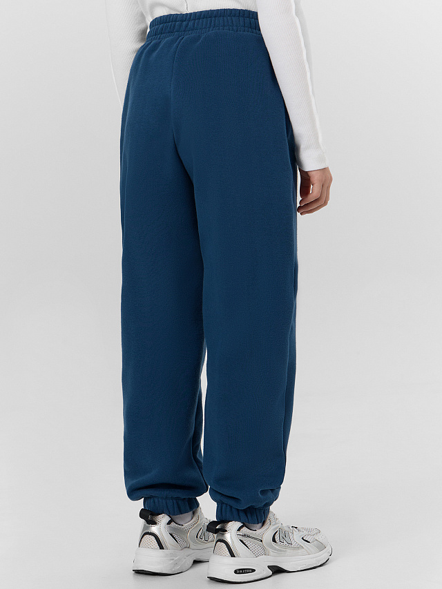 Синие брюки для девочек свободного кроя с мягким начесом — практичная и уютная модель для повседневной носки. Элегантные стрелки на передних деталях добавляют образу аккуратности и строгости. Широкий пояс с эластичной тесьмой обеспечивает комфортную посадку, а декоративная строчка подчеркивает продуманный дизайн.