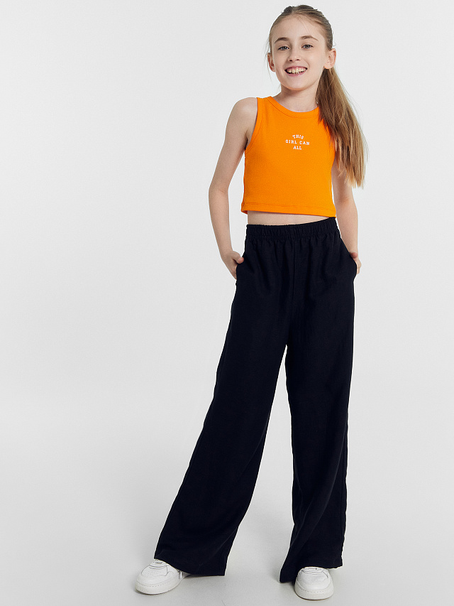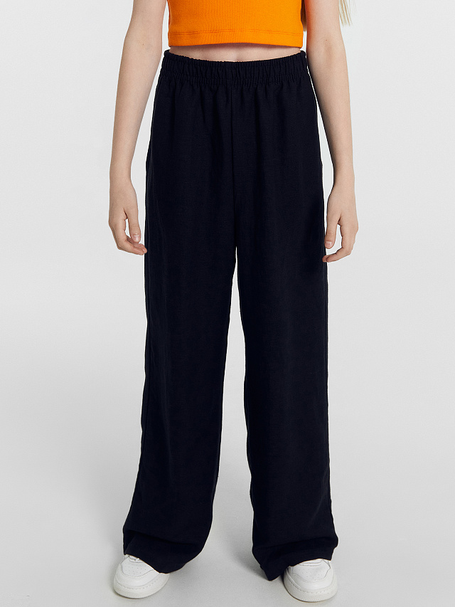 Стильные детские брюки из премиального льна и вискозы. Отличаются исключительной мягкостью и воздухопроницаемостью. Обеспечат вашей девочке прохладу и свежесть даже в жаркие дни. Широкий крой брюк создает легкий силуэт, обеспечивают максимальную свободу движений. Эластичный пояс на резинке гарантирут идеальную посадку. Брюки имеют два вместительных боковых кармана, в которых ваша девочка сможет хранить мелочи. Лучший выбор для летнего сезона. Рекомендуем!