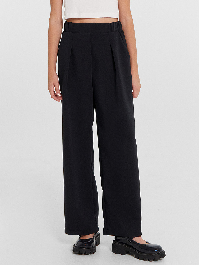 Представляем осеннюю новинку — брюки для девочки палаццо из мягкого, струящегося материала. Модель имеет боковые карманы и защипы спереди, что создает эффектный силуэт. Пояс выполнен на удобной резинке, который обеспечивает комфортную посадку. Палаццо выполнены в полную длину и отличаются широким, свободным кроем. Такой фасон визуально вытягивает и стройнит фигуру, придавая образу элегантности и женственности. В состав ткани входит район, что делает брюки приятными к телу и позволяет коже дышать. Модель подойдет как для повседневных образов, так и для торжественных случаев. Сочетать можно с топами, блузами и футболками. Стильные и комфортные брюки палаццо станут отличным выбором для юной модницы. Они подчеркнут ее индивидуальный вкус и добавят изюминку в любой наряд!