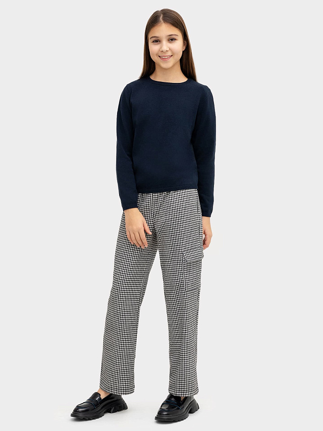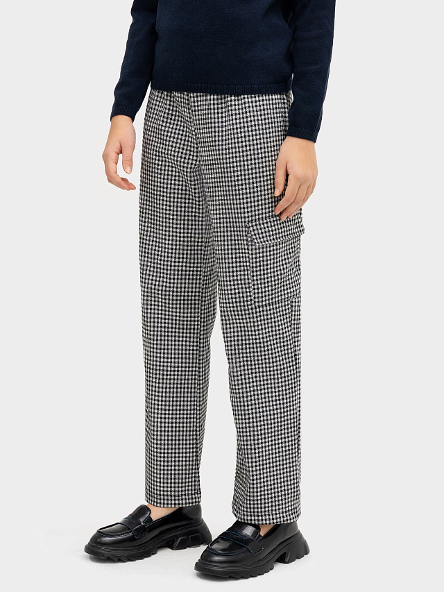Брюки для девочек в черном цвете с паттерном "клетка виши"