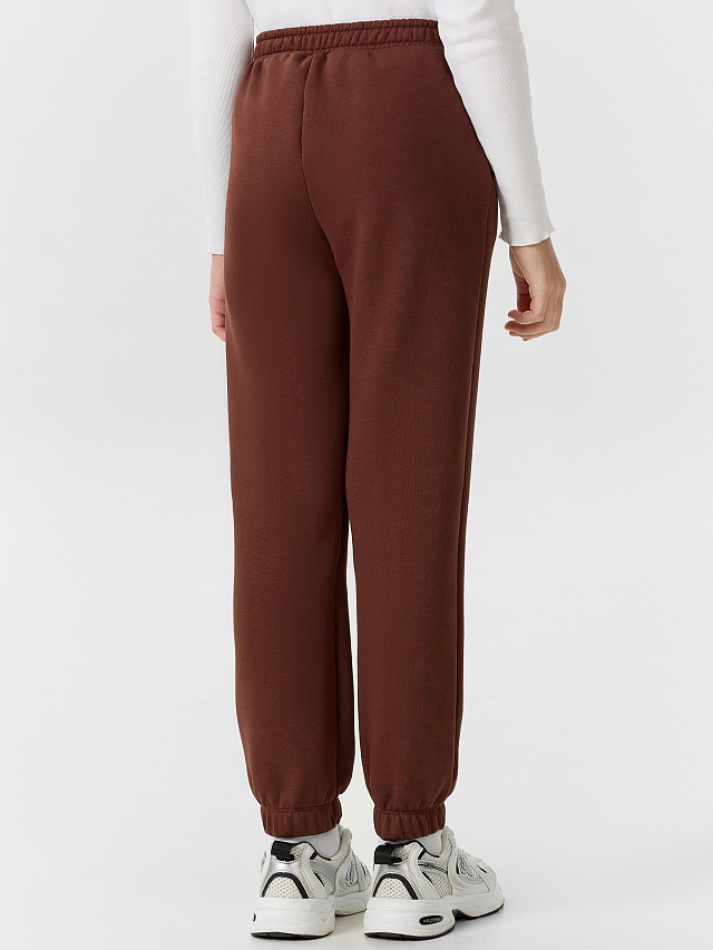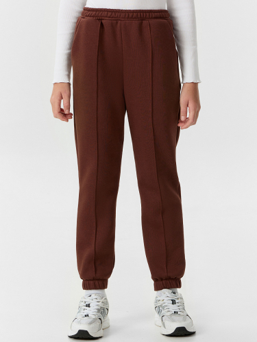 Брюки из трикотажного футера с подчесом. Силуэт свободный, на передних половинках обработаны карманы с наклонным входом. Пояс с эластичной тесьмой внутри. Низ штанин – с эластичной тесьмой, отвернут. Отличная модель для девочки!