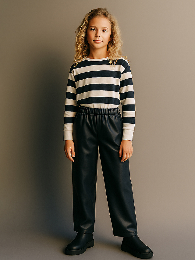 Кожаные брюки для девочек – эффектный и современный выбор для маленьких ценительниц стиля. Модель свободного силуэта со средней посадкой обеспечивает комфорт и свободу движений. Эластичный пояс гарантирует удобную посадку, а боковые карманы добавляют функциональности. Изготовленные из высококачественной искусственной кожи, брюки не только выглядят эффектно, но и приятны на ощупь. Они легко сочетаются с различными элементами гардероба, создавая стильные и яркие образы на любой случай.