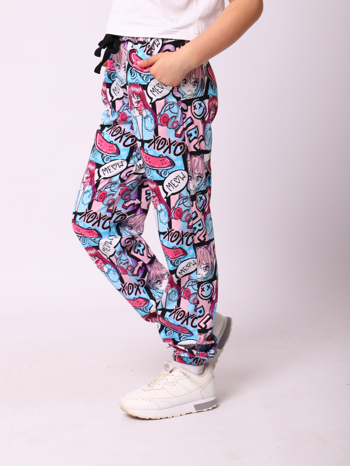 Брюки для девочек подростков. Детские подростковые штаны сшиты из легкого хлопкового трикотажа, прямого силуэта, внизу на резинке, с кармашками по бокам, высокой посадкой по талии с регулируемым шнурком. Подростковые брючки сшиты из натурального материала, свободные и дышащие. Спортивки подойдут для прогулок и активных спортивных игр и соревнований . Это прекрасные брюки для повседневного ношения. Домашние дела с этих брючках очень удобно делать. Джоггеры подходят и как домашняя одежда, в них комфортно и уютно. Кто-то из ребят захочет использовать их как пижамные брюки. Будем рады, если вы оставите отзыв о наших моделях одежды. Учтём Ваши пожелания! Повседневные брюки это удобная практичная немаркая модель на каждый день. Поскольку эта летняя модель внизу на резинке, ее можно выбирать с небольшим запасом по длине, они сядут на ножку ребенка удобно. Спортивные трико можно использовать как пляжные. Они подойдут девушкам, поскольку ростовка этой модели легких штанов до 164 роста. Данная модель порадует ребят в качестве подарка.